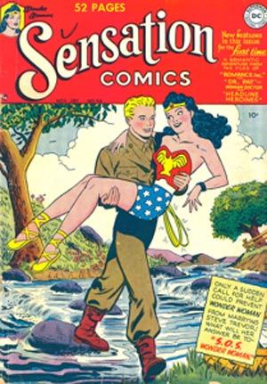 There was another strange thing in the “Wonder Woman” comics of the ’40s. Despite the fact she was strong, in pretty much every story she gets tied up. All of those bondage images were eliminated from the stories by the ’50s when things got to be more conservative.