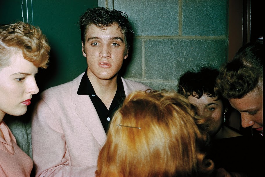 At some point during the proceedings, Edwards snapped a now iconic color photo of Haley and Presley shaking hands (above). Haley’s 1954 cover of “Rock Around the Clock” was one of the genre’s first monster hits. He was the established star while Presley was still the young upstart, but in Edwards’s photo, the bow-tied Haley resembles someone’s doughy uncle compared to Presley, who looks like the sort of boy you’d definitely want to keep your daughter away from.