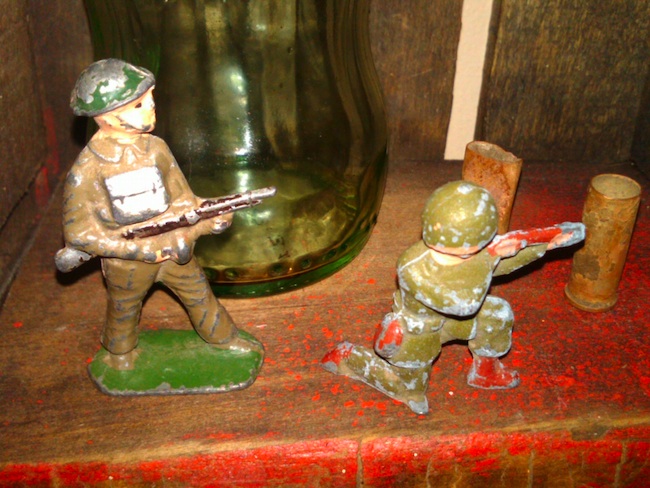 Jacob is drawn to old military toys, like these metal soldiers, which sparked his interest in picking.