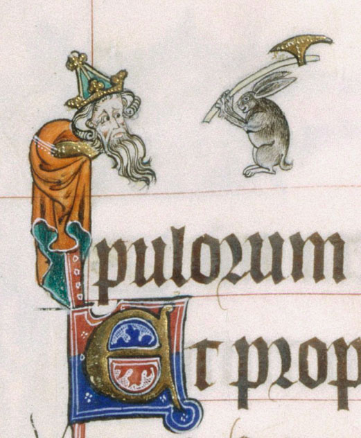 Killer rabbits existed long before the Monty Python skit, as seen in the Gorleston Psalter, c. 1310-1324. (British Library Royal MS 49622, f. 13v.)