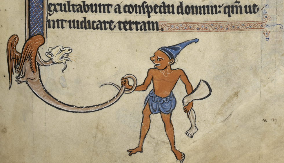 Dragon’s tails and severed legs on the pages of the Rutland Psalter, c. 1260. (British Library Royal MS 62925, f. 98r.)