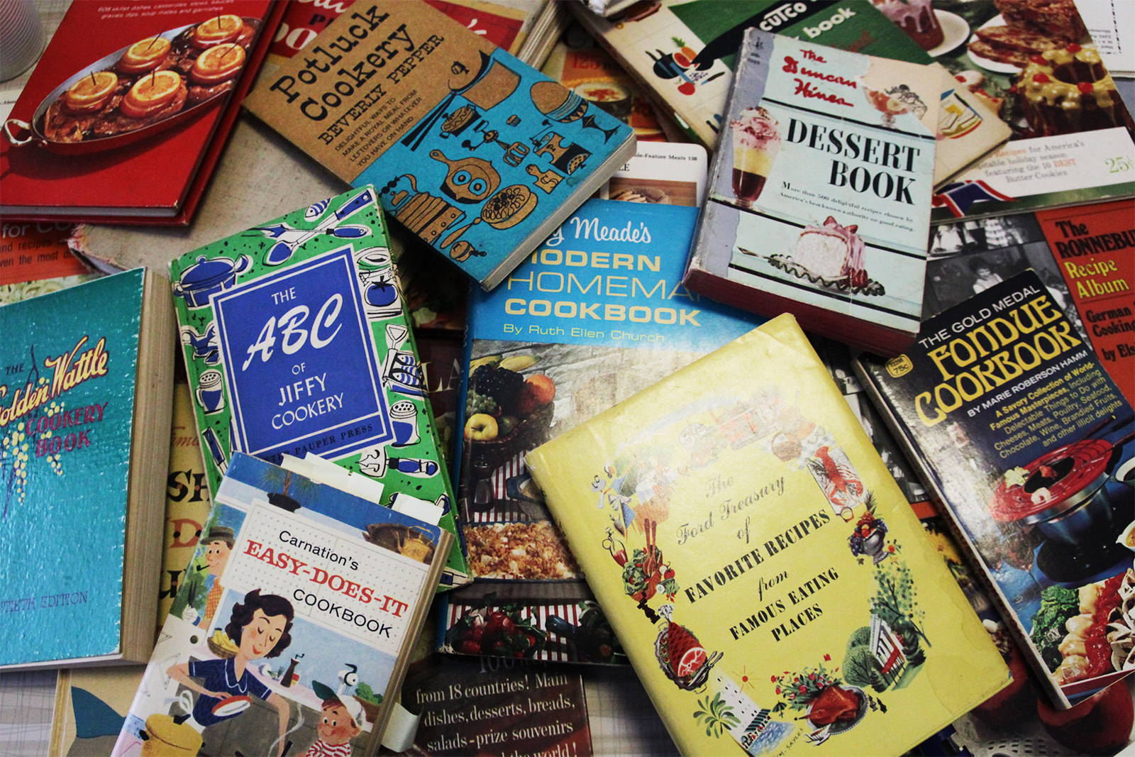 I think that dessert recipes tend to be better because people were better bakers back then, to be honest. It was a time when people were just getting used to boxed mixes, and a lot of the recipes in contests where people would submit their own recipes, like the Pillsbury bake-offs, are amazing. The recipes are for these huge layer cakes that people made from scratch and perfected for this contest, and they were just regular people cooking in their home kitchen.
