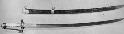 Sword with Scabbard by Samuel Drowne: The silver hilt, that ends in a bird's head, and the mounting bear his mark. It was made circa 1775. The scabbard, as was general at this time, is of finely tanned leather. The blade was probably a European import.