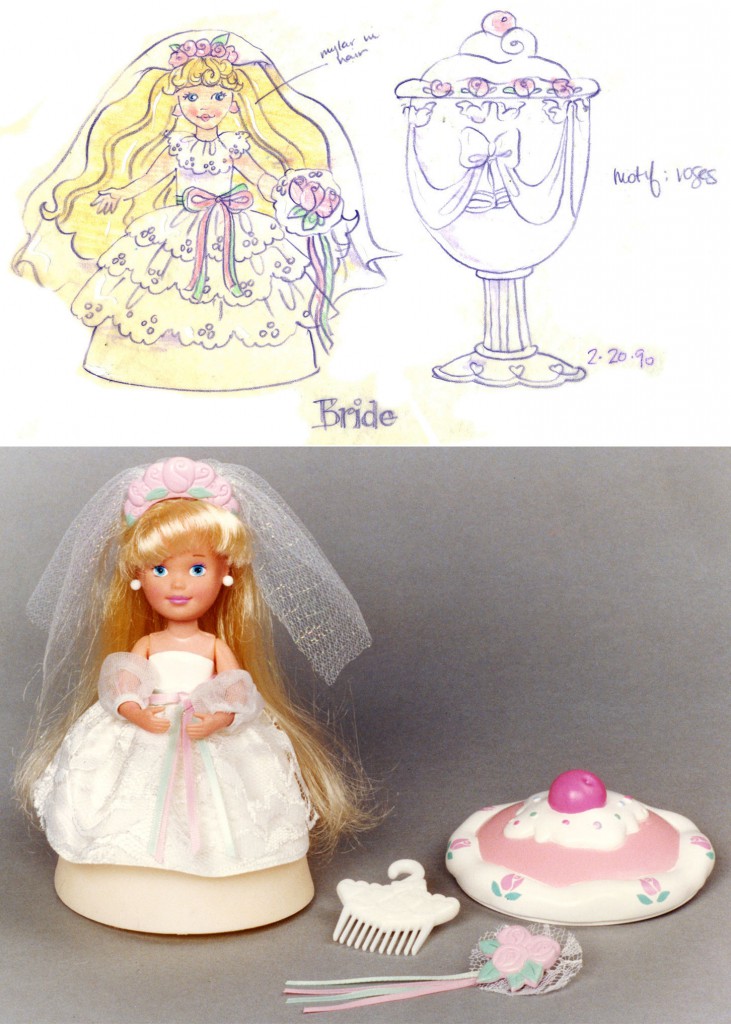 Eskander’s first concept sketch and finalized toy for the Princess Parfait character in a line of Tonka toys that transformed from cupcakes into dolls.