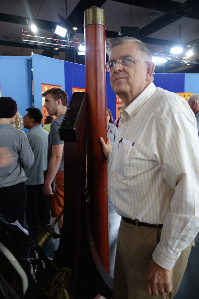 Steve waits to meet with a “Roadshow” appraiser in the Collectibles line with his telescope from the 1850s.