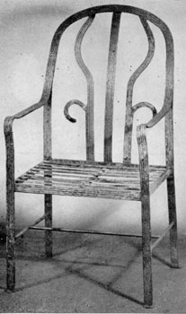 With it, collectors are turning an acquisitive eye on antique wrought-iron furniture. Most of the existing examples date from 1780-1790. And because of the medium in which it was produced, it is rather hard to differentiate between the style designs of Chippendale, Hepplewhite, and Sheraton.