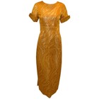 Other evening gowns of this period were produced in a straight column style. Sometimes called tea gowns, these outfits were typically beaded in Art Deco and geometric patterns on silk, with lengths that fell just below the knees...