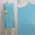 Designers experimented with making clothes out of all sorts of "unsuitable" materials—paper, plastics like shiny vinyl, leather, metals, and lurex metallic yarns. Paper dresses, usually printed with images inspired by Pop Art, are rare collectors' treasures today. Others looked to the Op Art movement, lead by painter Victor Vasarely, and used geometric patterns that trick the eye and appear to wave or move.