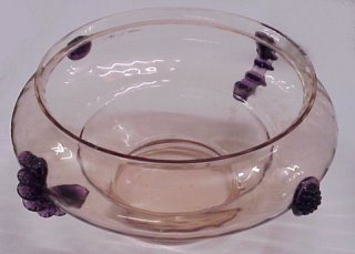 As it is described as [quote] "" STEUBEN QUALITY ART GLASS BOWL: Pink blown glass with amethyst applied decoration and raspberry pruints. 4" x 6"""