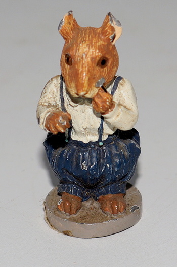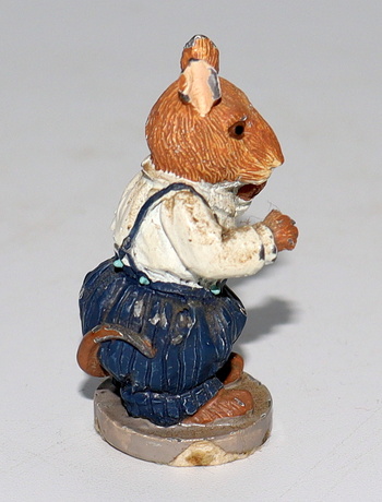 In continuation of my small lead figures we have my little shaving mouse. Yep, shaving mouse. He's actually shaving with a little safety razor. So very detailed in so many ways. He's only 1 1/2" tall, so that's one really small razor. Can't imagine why a mouse would need to shave, but this little fellow felt the need to:)