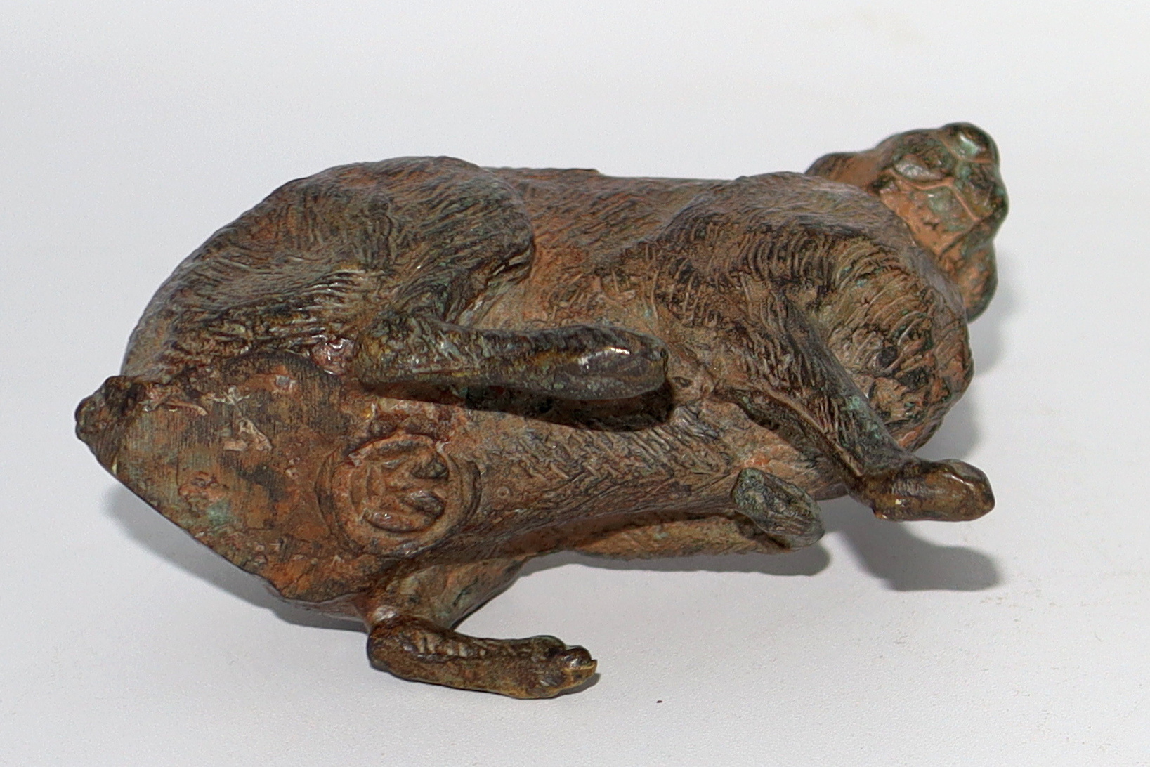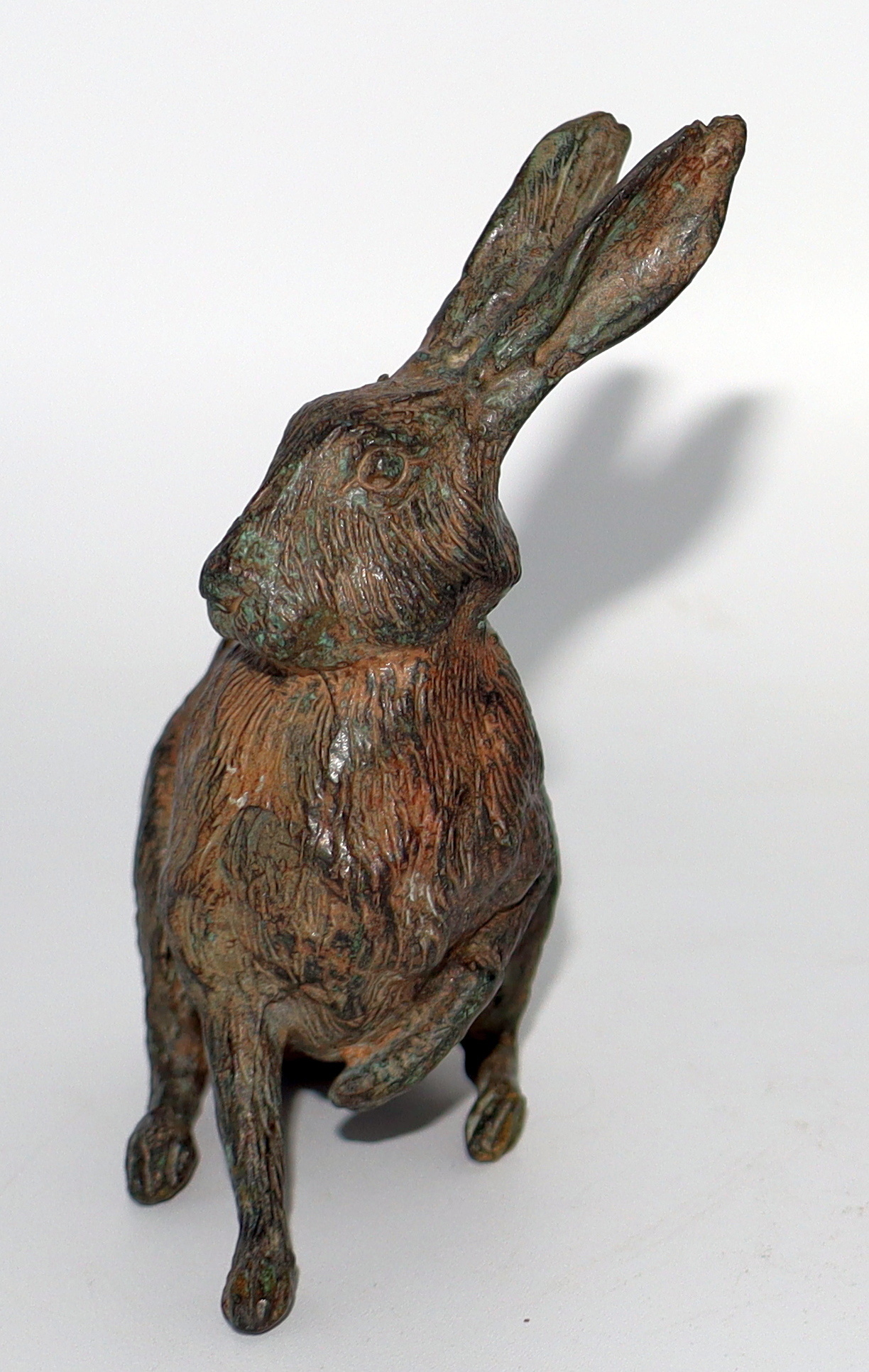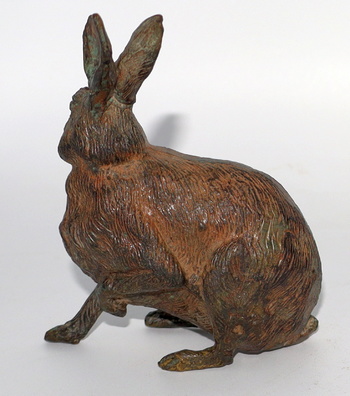 Another of my bronze hare sculptures. This one is solid bronze and has the Pierre Chenet signature crown on the bottom and was made in either France or Belgium. He's so incredibly detailed. He's small and only measures slightly over 3" long and 4" tall. I have several other Pierre Chenet bronze hare sculptures in my collection, but this is one of my favorites among them all and I hope you enjoy him as well.