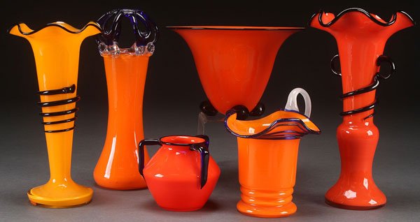 A collector's glass group, with several of the same pieces,
