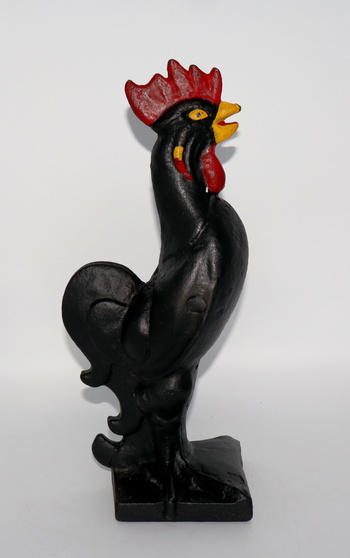 Another recent find is this wonderful vintage cast iron rooster. It's a copy of the original Verona Company version that was made in the early 1900's. Though this one looks exactly the same as the original, there is a difference. The original was a two piece design and this one is solid cast iron. Other than that, it's identical to the original. It measures 12 1/8" tall, the base is 4 1/4" and it weighs nearly 11lbs.