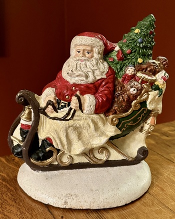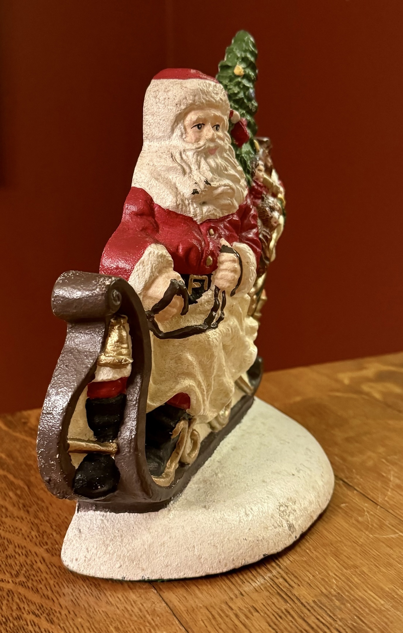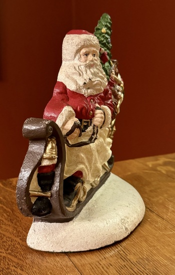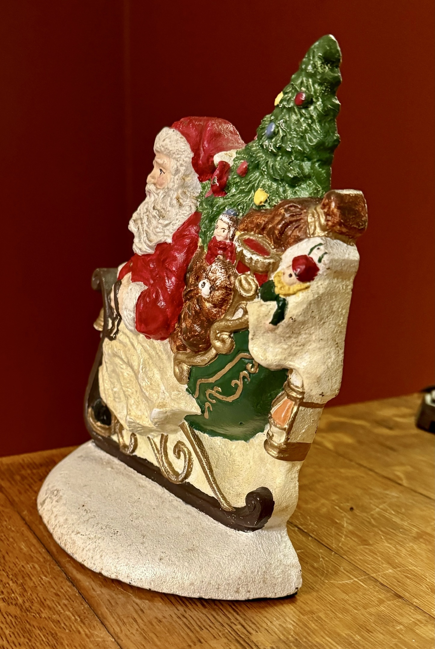 Wonderful Santa doorstop, bearing his gifts to delight all the children, as he comes "right down Santa Claus lane" :)