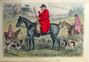 Robert Smith Surtees (17 May 1805 – 16 March 1864) was an English editor, novelist and sporting writer, widely known as R. S. Surtees. Surtees left for London in 1825, intending to practise law in the capital, but had difficulty making his way and began contributing to the Sporting Magazine. He launched out on his own with the New Sporting Magazine in 1831, contributing the comic papers which appeared as Jorrocks' Jaunts and Jollities in 1838. Jorrocks, the sporting cockney grocer, with his vulgarity and good-natured artfulness, was a great success with the public, and Surtees produced more Jorrocks novels in the same vein, notably Handley Cross and Hillingdon Hall, where the description of the house is very reminiscent of Hamsterley. Another hero, Soapey Sponge, appears in Mr Sponge's Sporting Tour, possibly Surtees's best work. All Surtees's novels were composed at Hamsterley Hall, where he wrote standing up at a desk.