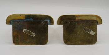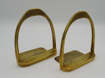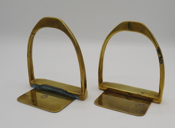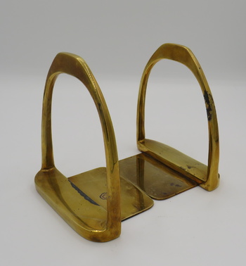 As you can probably tell by now, I have an extensive collection of equestrian related items. These are solid brass stirrup bookends that were made in England. There are a lot of reproductions of these on the market today that are single solid pieces. These are a two piece design that was made sometime during the mid 20th century. These measure 5 1/2 tall and 4 1/2" wide.