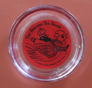 The Russian Tea Room ashtray is made of glass with an ACL decorating it. It measures 9.8Cm in diameter.
