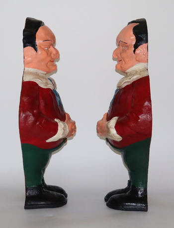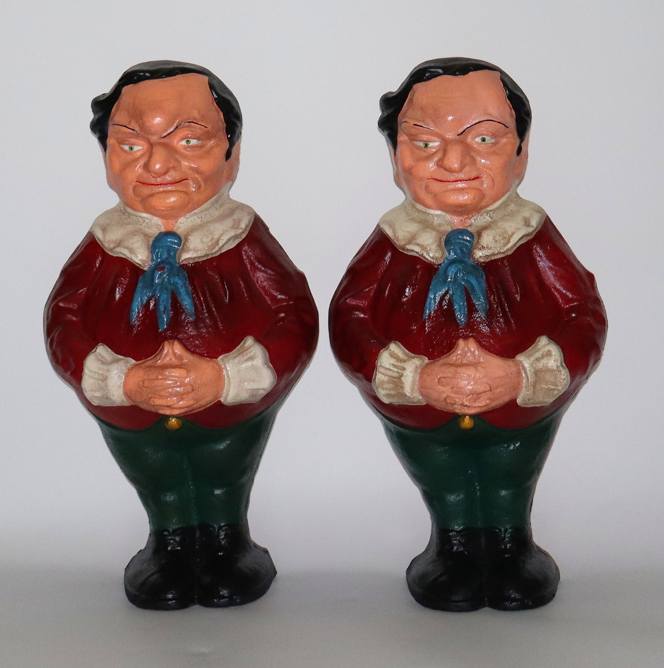 Since I just posted my Hessian soldier andirons, I felt it would be a great time to post these as well. They're cast iron Tweedledee and Tweedledum fireplace andirons. These are extremely rare and were made in England in the late 1800's. Of course, Tweedledee and Tweedledum are from the 1865 novel "Alice In Wonderland" by Lewis Carroll. And yes, they do look a bit creepy, but how about those green eyes!