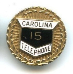 A gold Carolina Telephone pin. The company was originally known as Carolina Telephone & Tekegraph, and featured a bell symbol. The company was bought by United Telephone (hence the shield as used by United Utilities). I have a 5 year, 10 yesr, and 15 year. The pins mean a lot to me because I lived in Wake County for 20 years.