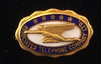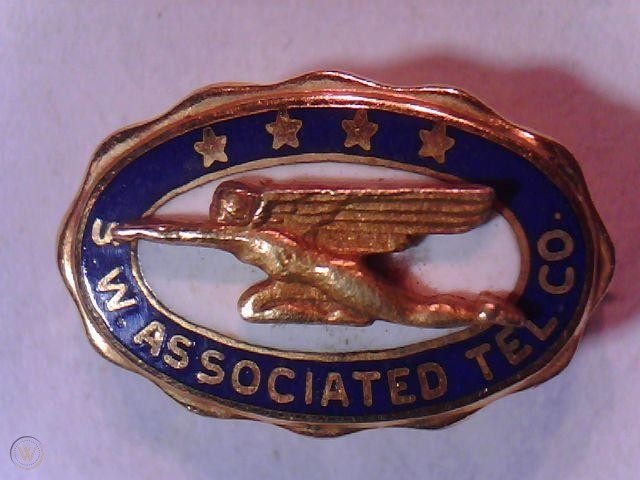 Adding pins as issued by the holding company, Associated Telephone Corporation. I am adding rhe photos slowly. All marked 10K. I am still looking for a San Joaquin Associated Telephone Company pin - 17 years later!