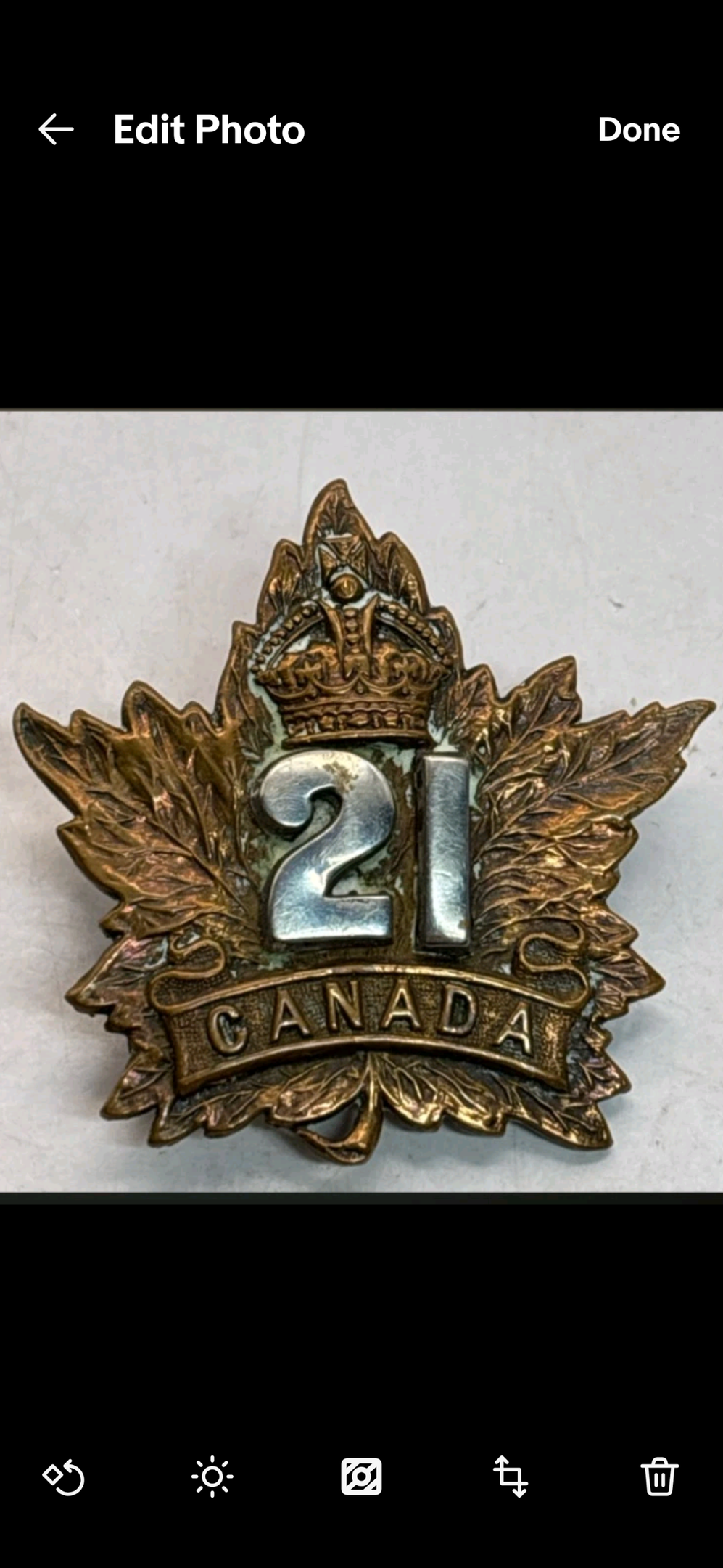 WWI Canadian Expeditionary Force 21st Infantry Battalion (Eastern Ontario) metal cap badge.