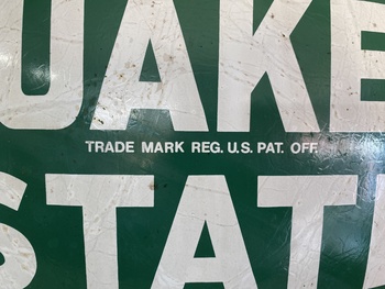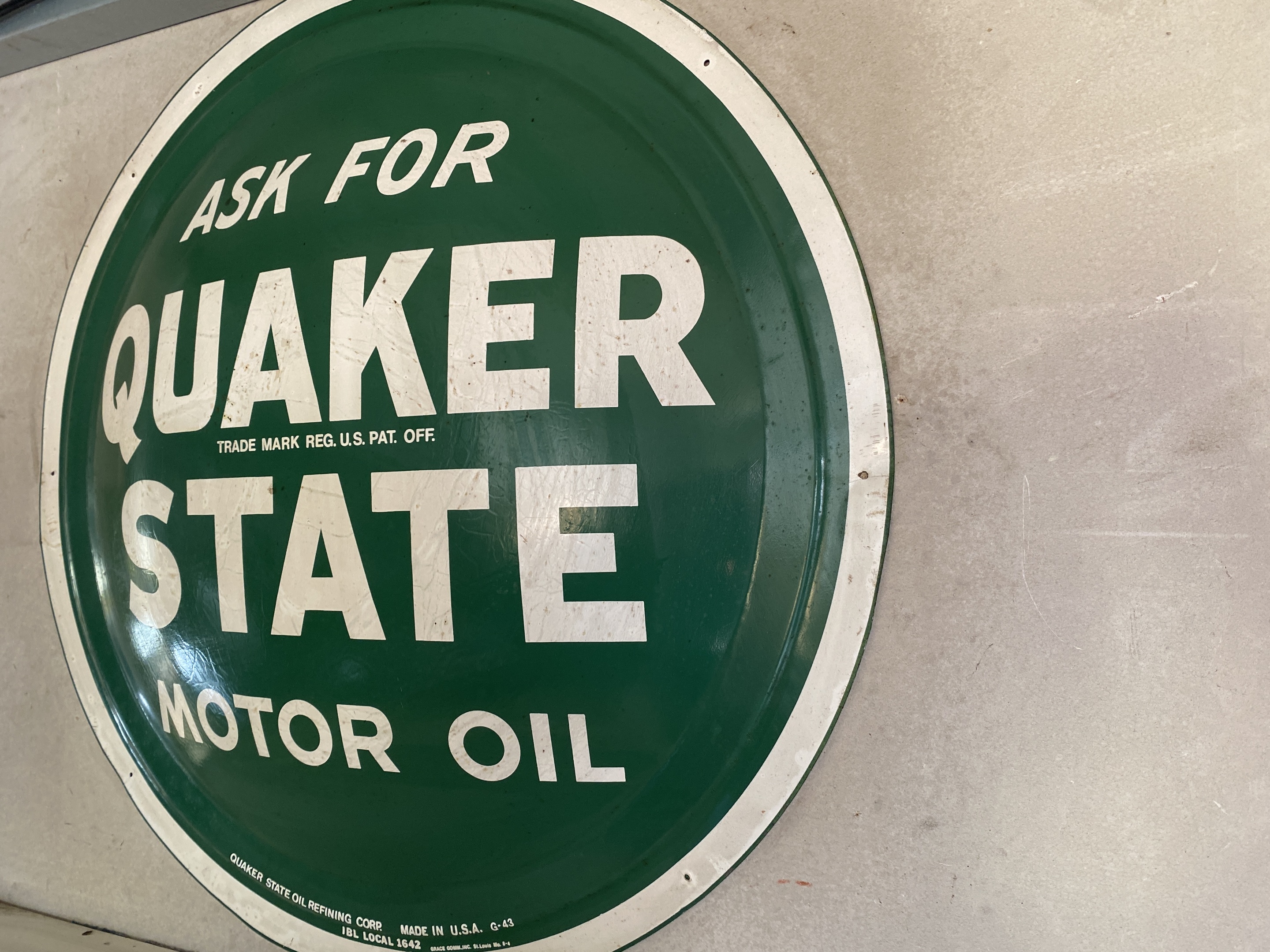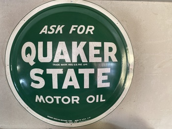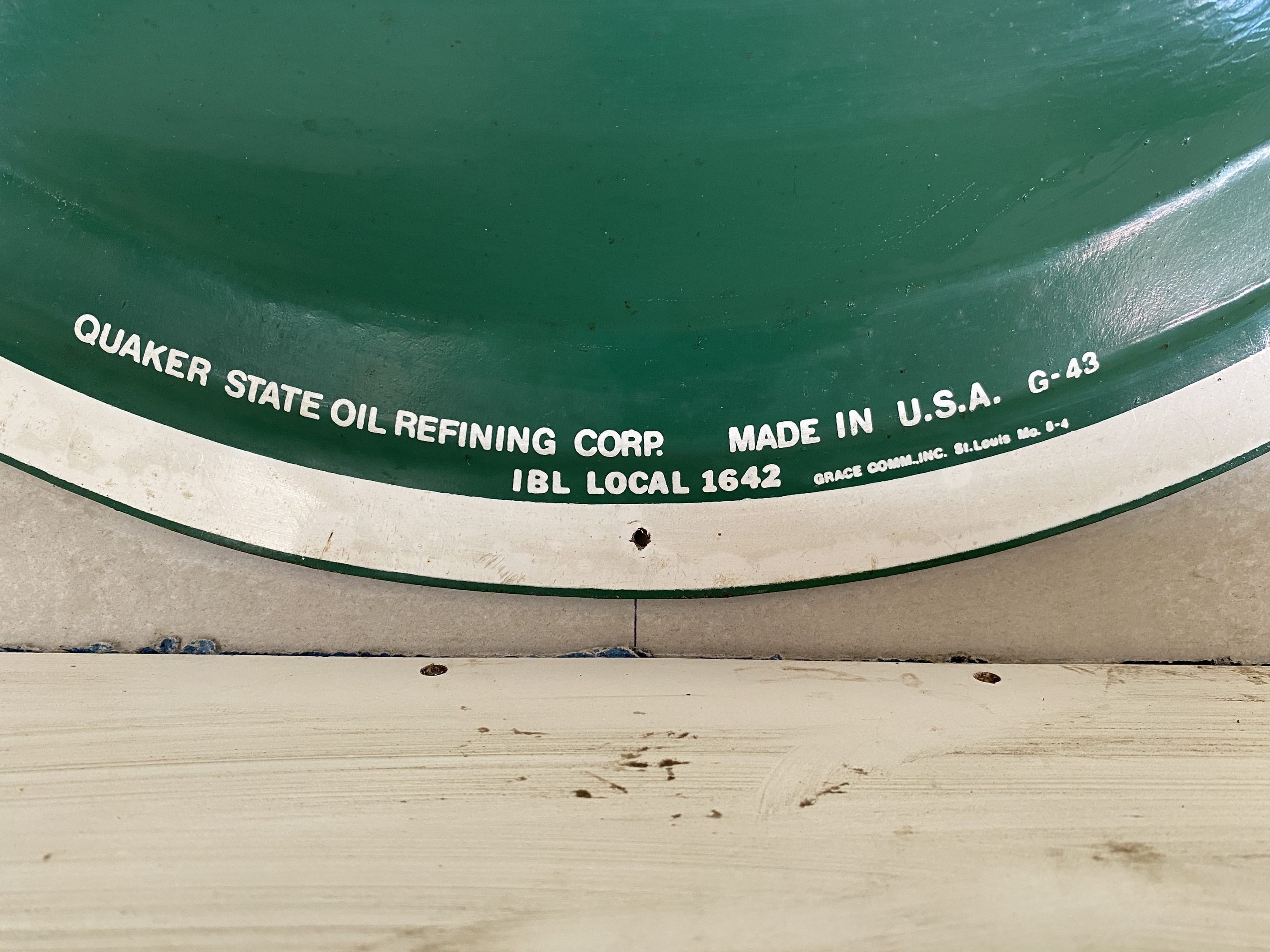 All these details strongly confirm the authenticity and age of the sign. It fits perfectly with the production style of Quaker State signs from the 1950s.