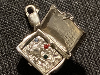 I’ve just found this lovely silver charm, came across a lot of charms when I was looking for silver bits, some antique and some newer types, this is a big charm and quite heavy.