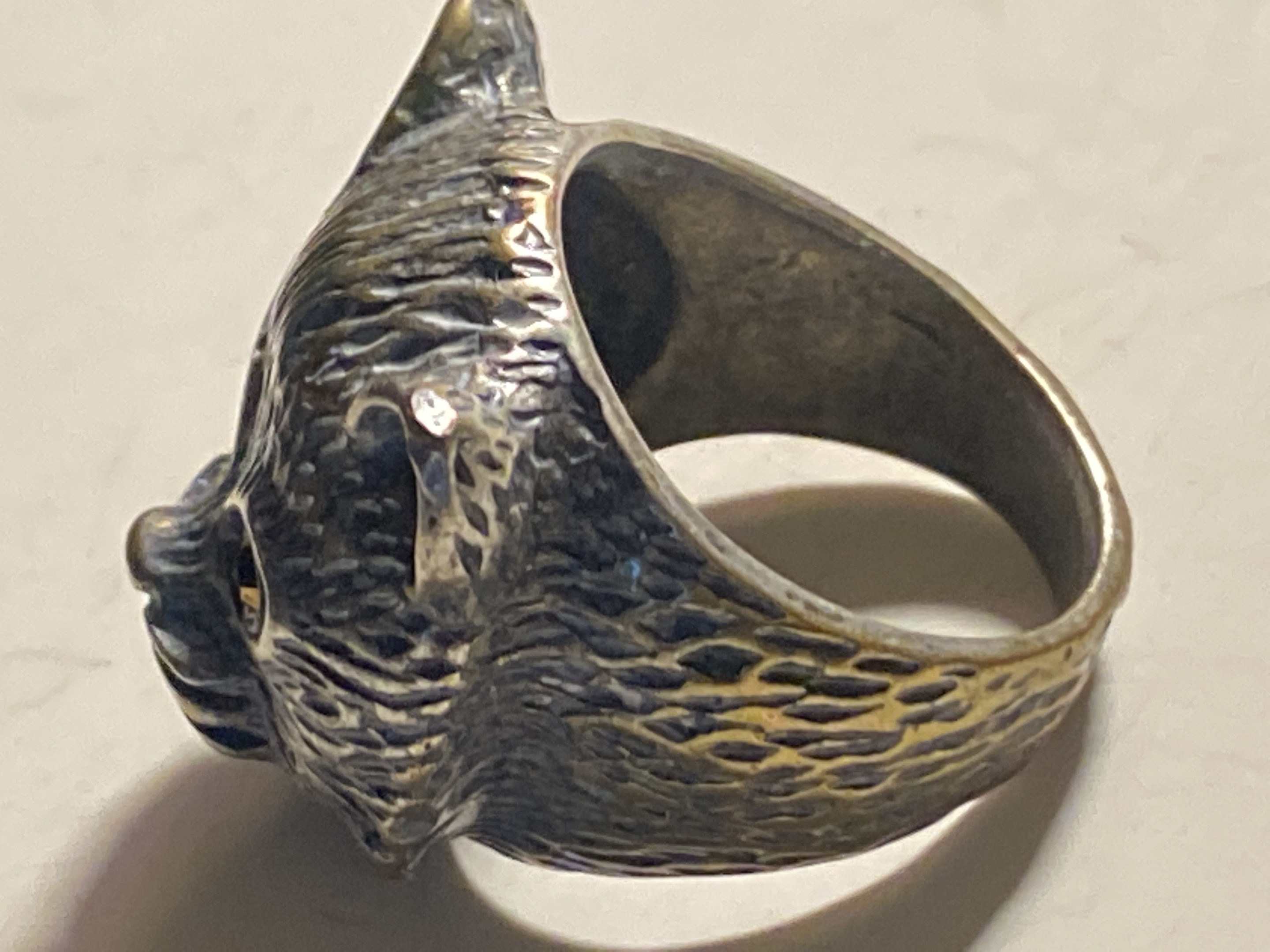 Hello I’ve just rediscovered this old interesting ring that I know nothing about, I didn’t try to clean this year’s ago so it still looks how I found it, can’t see any markings and have no idea what kind of metal it is. But looks cool, who would make a ring like this? Only one I ever come across