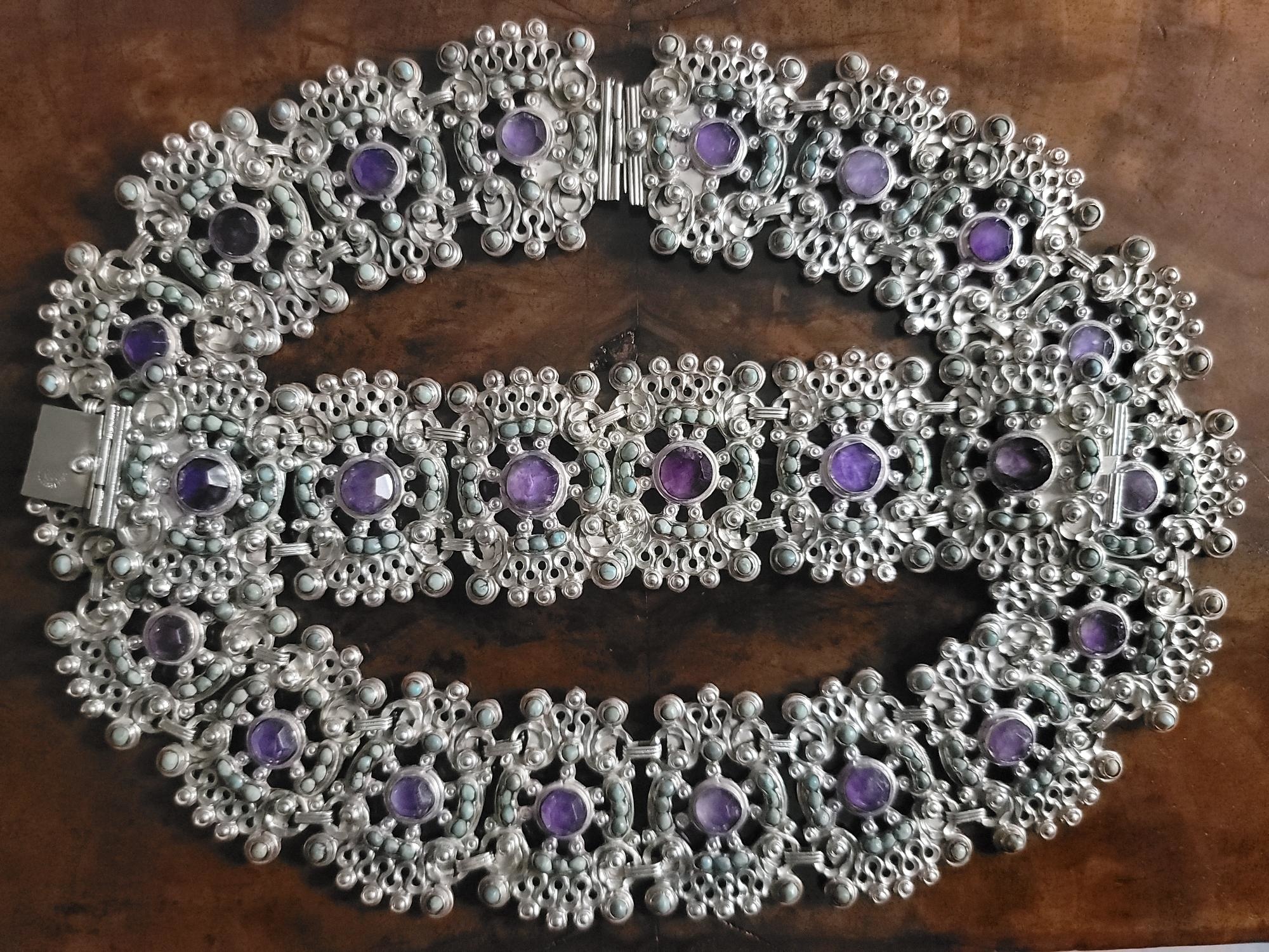 I have a weakness for Mexican jewellery. This set is in the style of Matl creations but is signed JDG (Dominguez?). It is a very heavy set and in almost perfect condition. Although I believe that this is a pre-eagle piece from around 1940, it must have been only very seldom worn.