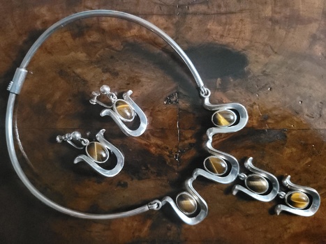 Beautiful Mexican silver jewelry posts today Gudrun, both are lovely. Might the stones in this set be tiger eye