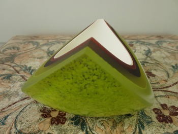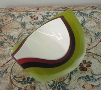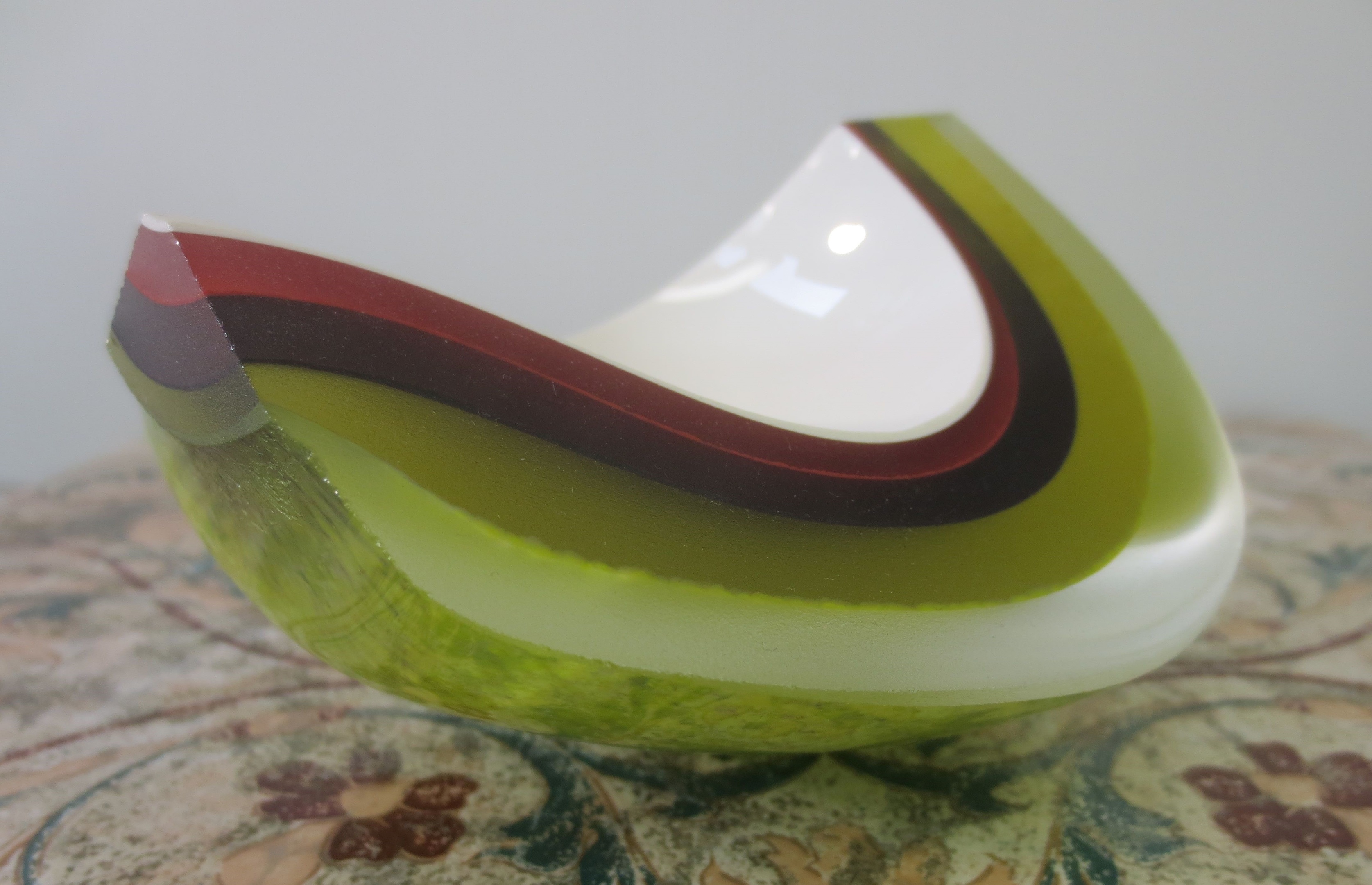 Dominic is another Whanganui artist that spends a lot of time doing coldwork. He blows the base piece as a cylinder or globe of glass with multiple colours/layers and then cuts and polishes into what you see here. Some he joins together into much larger works but I have just a couple of the single piece ones.
