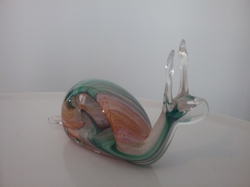 Dean thank you for your great comment & appreciation of this layered glass snail's body, the head appears hand blown but don't know how they created that swirly glass body - he's one unusual snail, that's for sure!