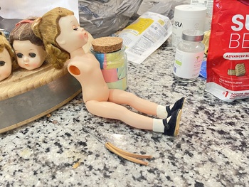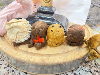 Picked up at habitat. The heads and body are hard plastic they attached by the metal and rubber band or leather there is no markings any Infor would be wonderful what years are they from and the names thanks