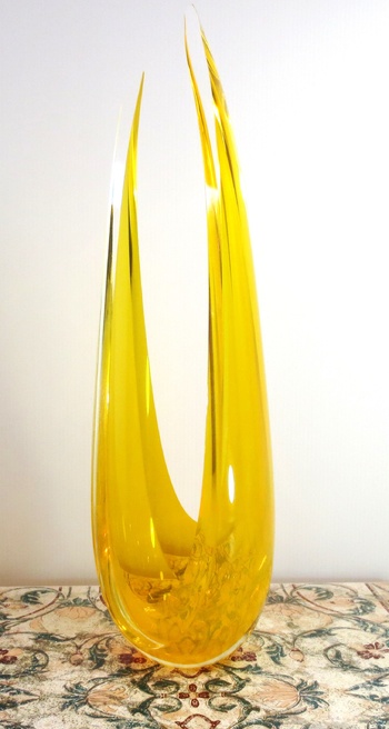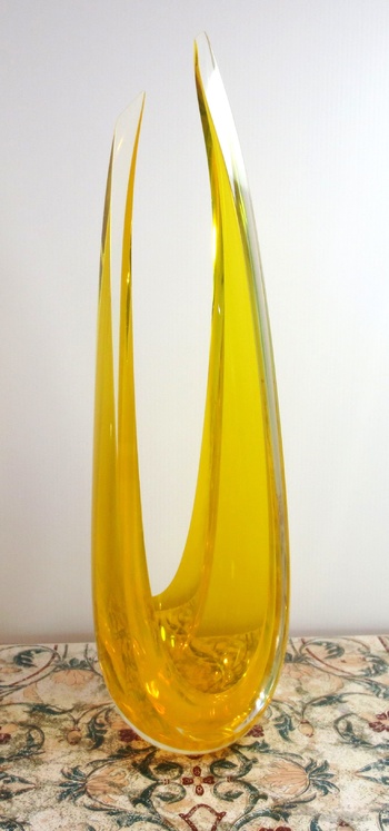 Greg Swinburnes work I have posted before. With these he makes a glass tube shaped bottle and then gets to work with his diamond saws and polishing gear. Looking around his studio I asked if he had pattens to use when cutting but no he does them free hand.