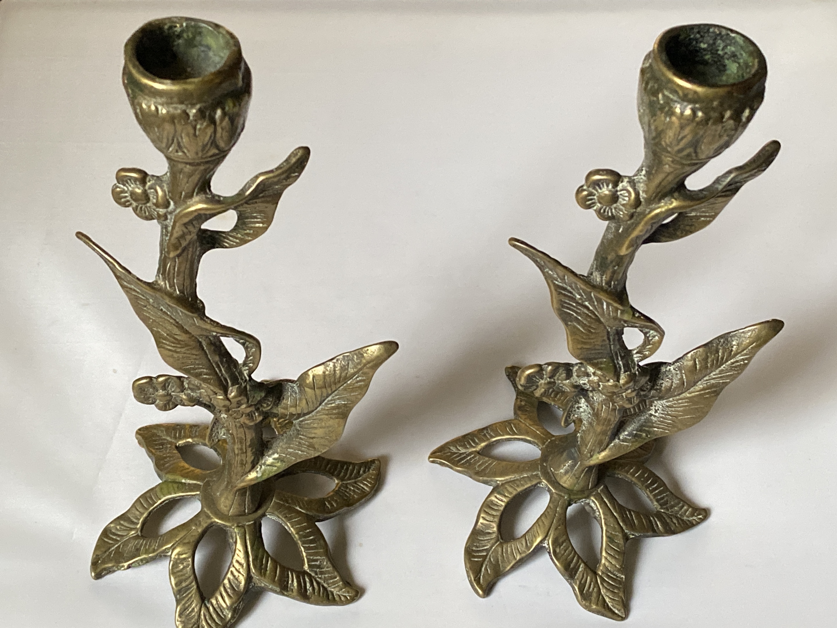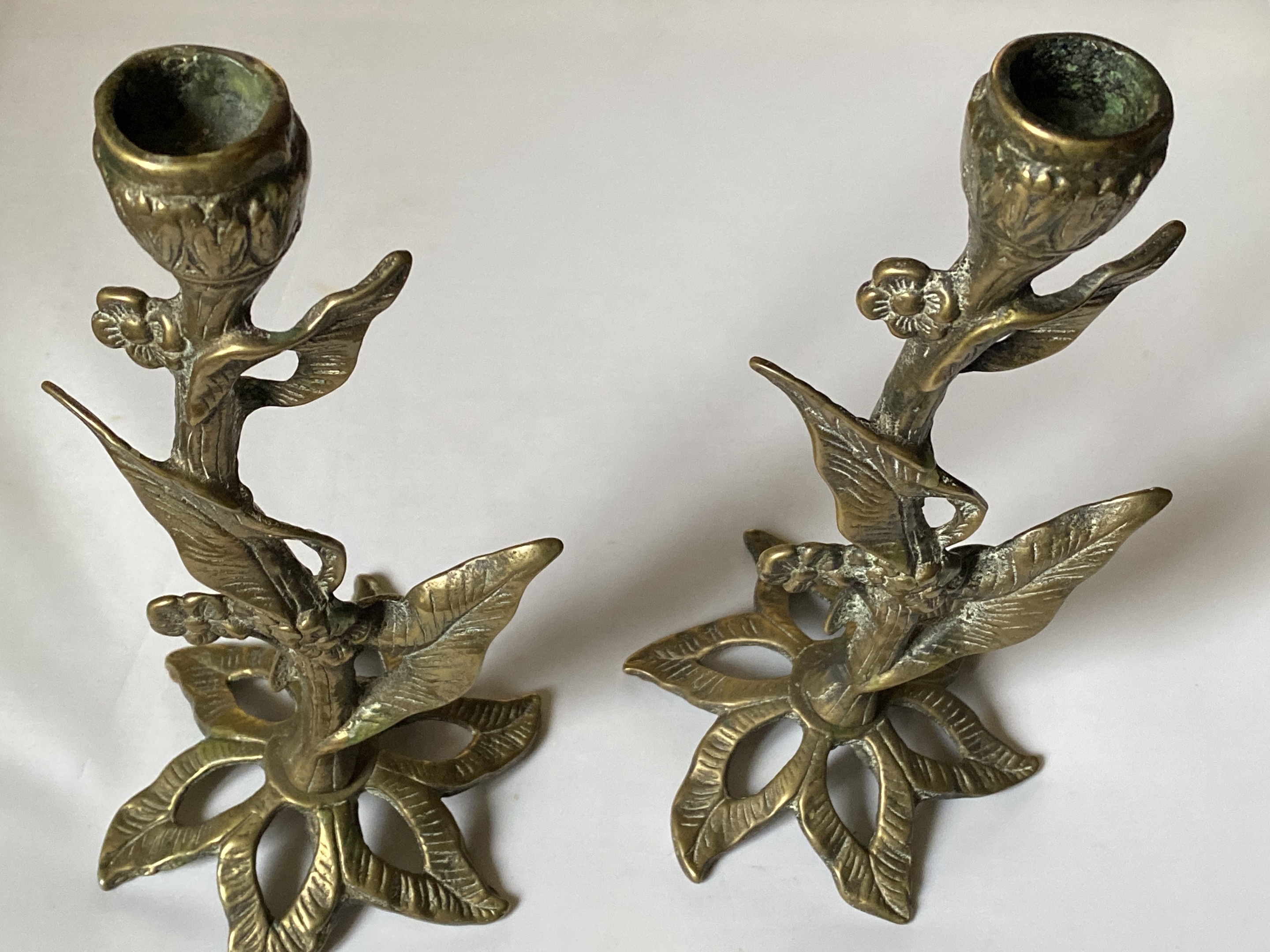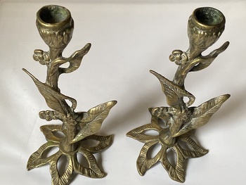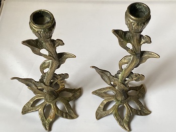 Hello I’ve just rediscovered this pair of antique candlesticks , look handmade bronze with plant look to them, never found another like it and wondered if anyone online knew more about how old they could be