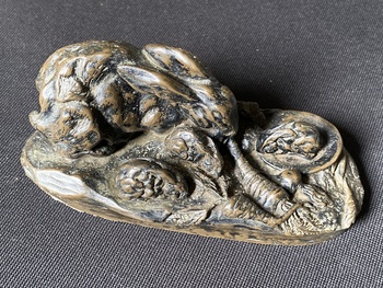 Vintage Skulptur Hase & Babys von L REEVES in Kaltgussharz Bronze ...