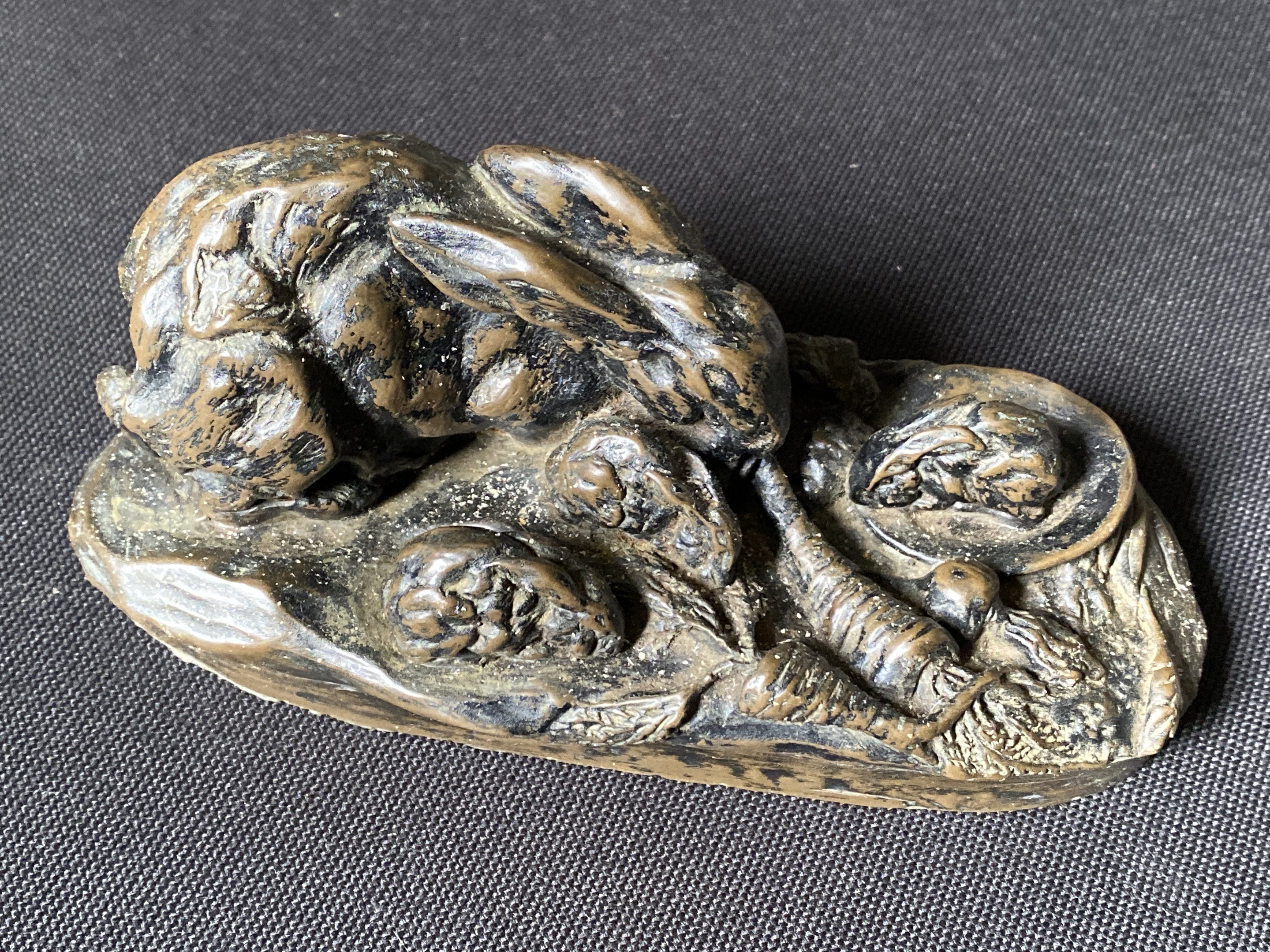 Vintage Sculpture Rabbit & Babiesby L REEVES in Cold Cast Resin Bronze