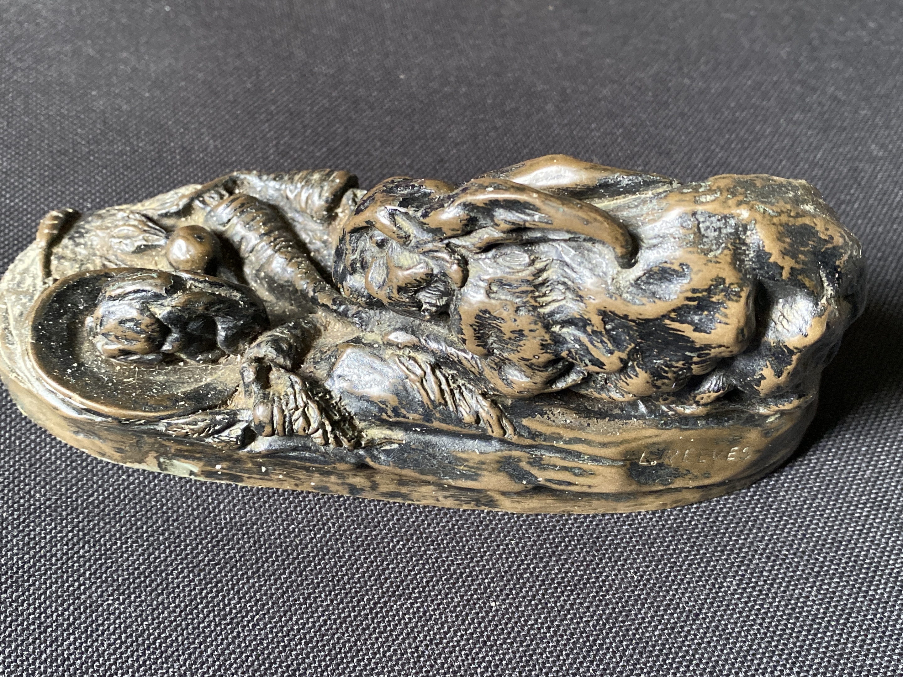 Hello I’ve just rediscovered this lovely sculpture, this was totally black and is very heavy, it was the first bronze I had ever found, and thought it would be a good idea to clean it as I didn’t know that wasn’t a good idea, I ruined it and spent hours trying to clean it if I remember right.but it did reveal a name which I’m hoping that someone might recognise , I think it is antique