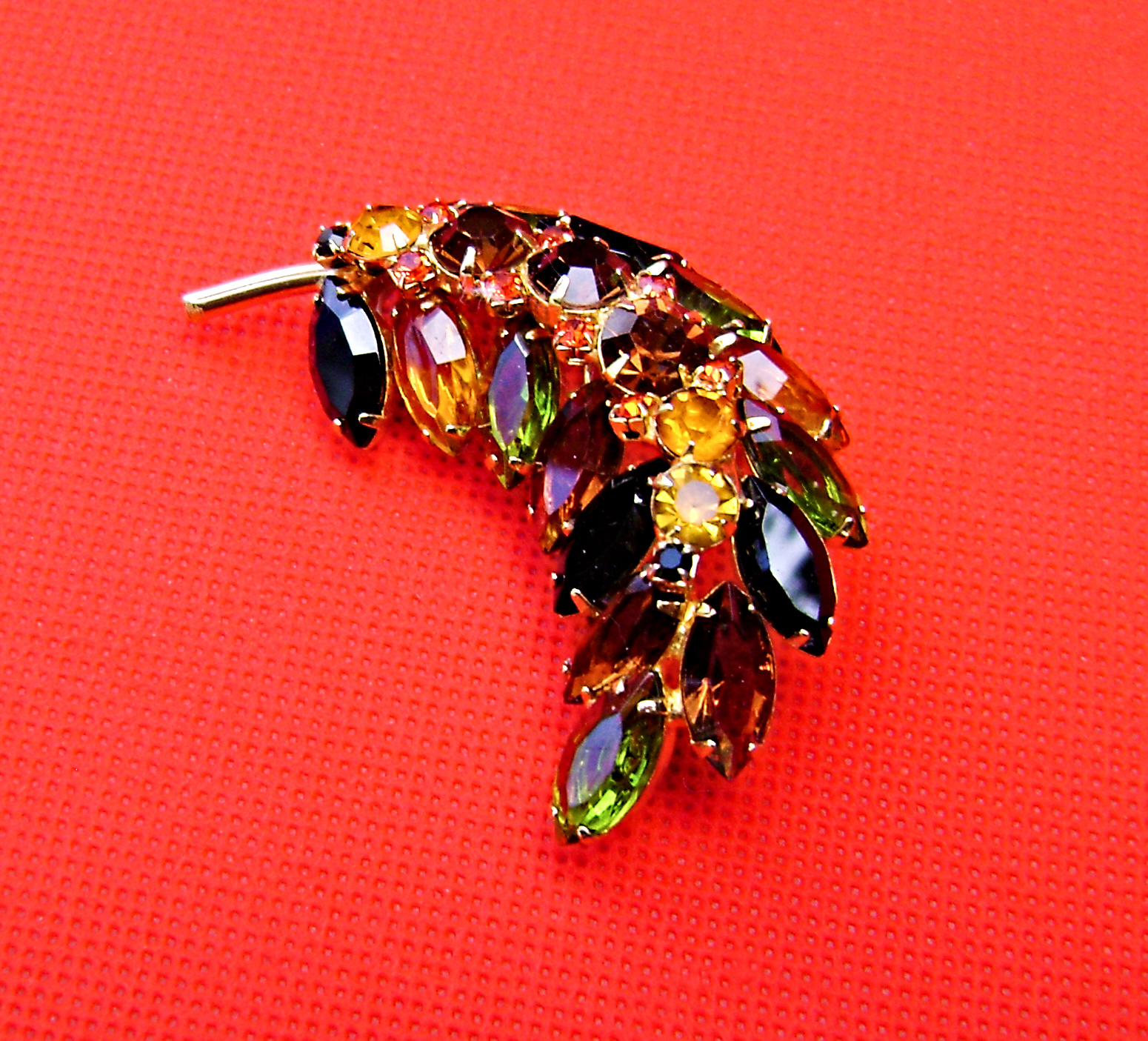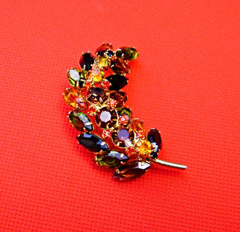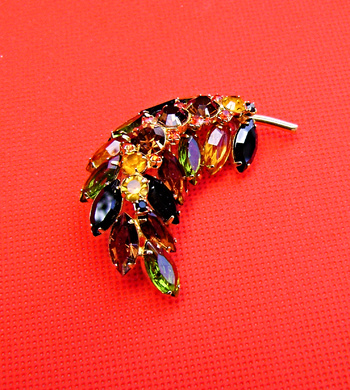 Delightful Juliana leaf brooch, the rhinestone colors are a lovely blend