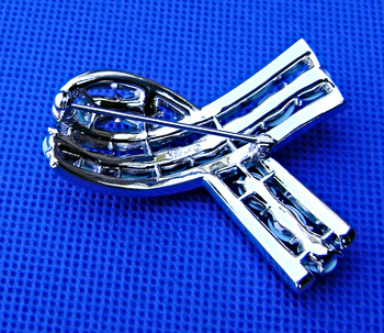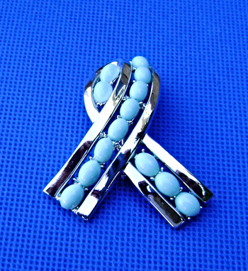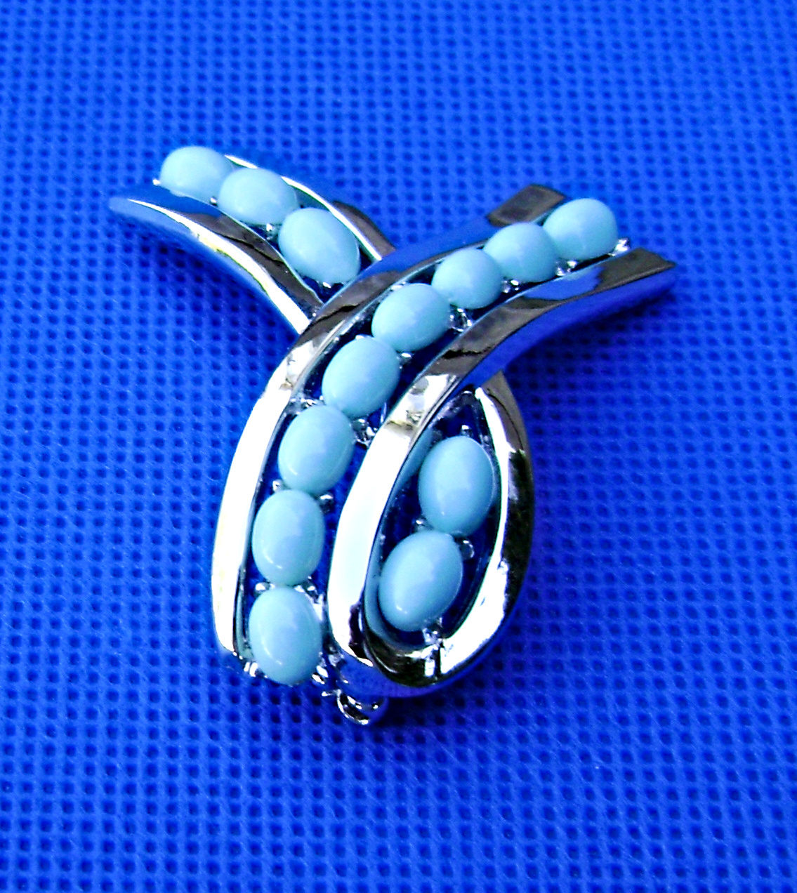 Beautiful Trifari awareness type ribbon brooch, the turquoise & silver look great together