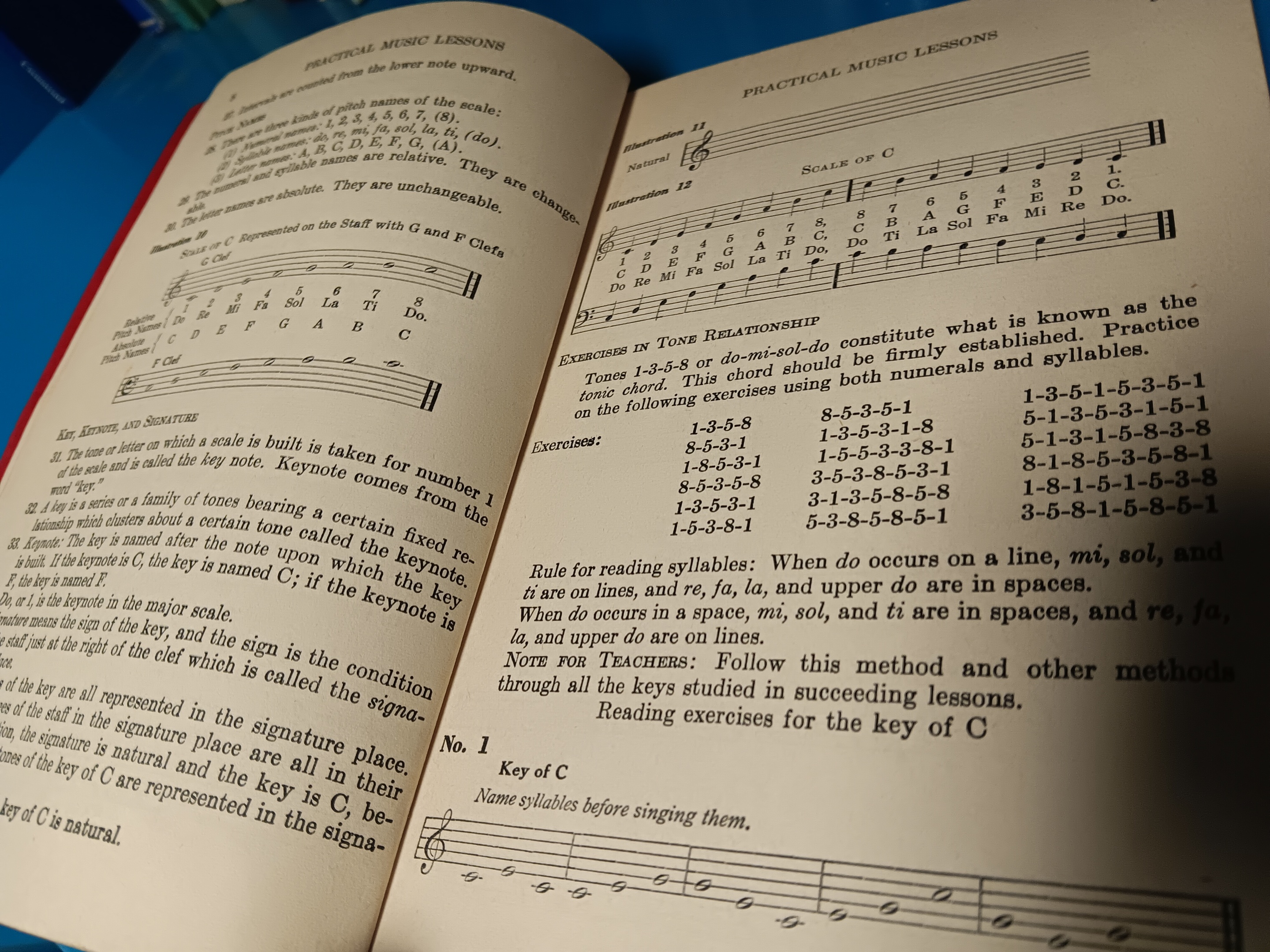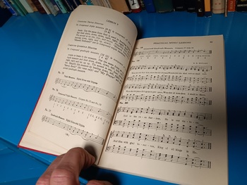 A 1950 PRINTING OF A MUSIC INSTRUCTION BOOK. THIS BOOK BEGINS WITH THE BASICS OF READING MUSIC, LEARNING SCALE AND COMPOSITION.