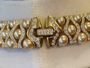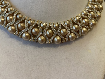 I just found this necklace. Dates from the late 1980s when the luxe look was the rage. This design is very similar to an Alpha necklace in the Luxury for Fashion Exhibition of costume jewelry in Germany.
