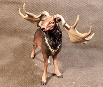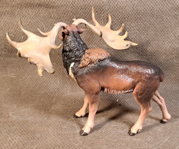 This is Megaloceros also known as the Irish Deer. It was the largest known species of deer with antlers that spanned nearly 12 feet. Looks like about 8 feet tall at the shoulder. The last found remains were estimated to be a bit less than 8,000 years ago in Russia I believe.