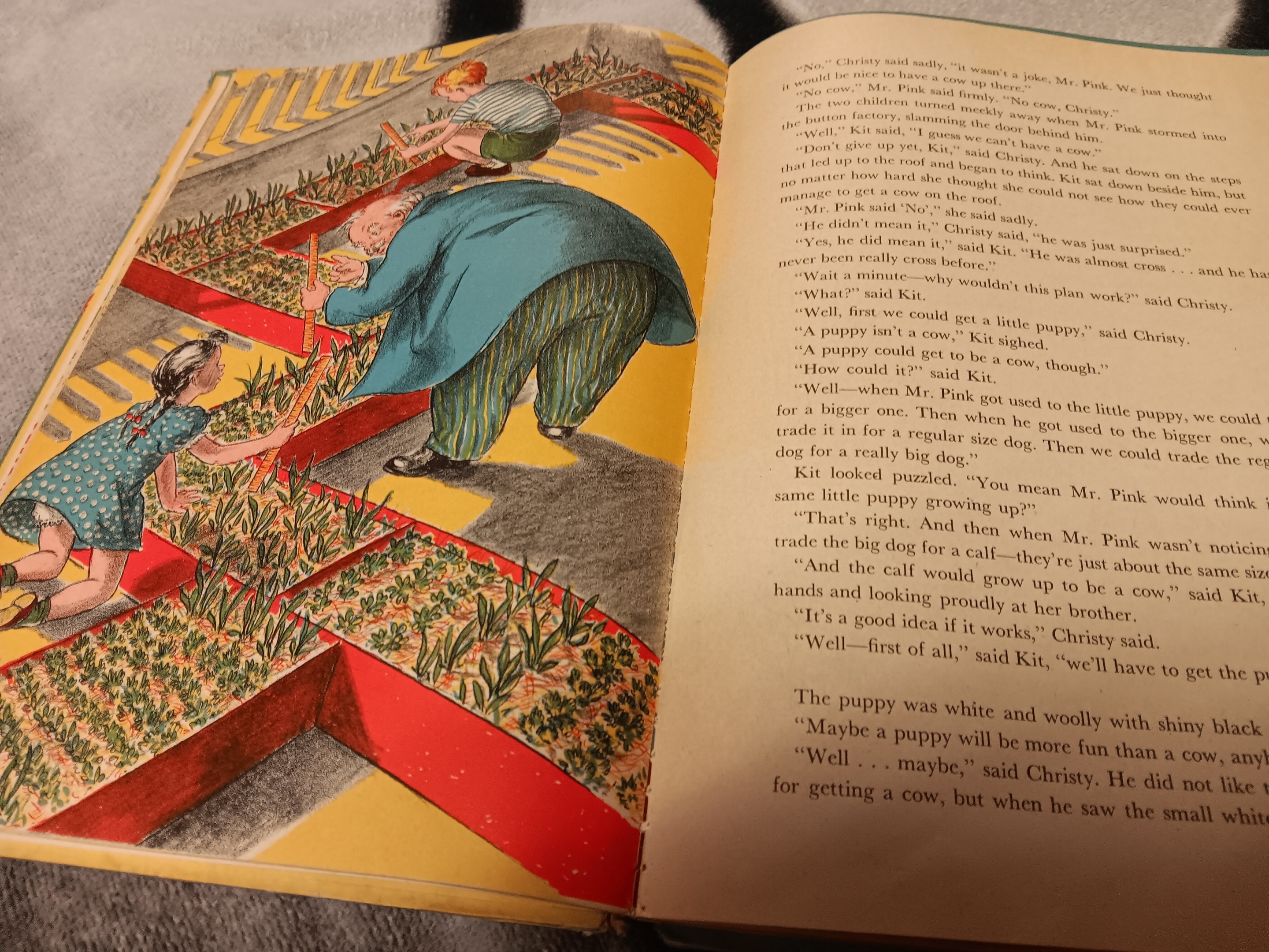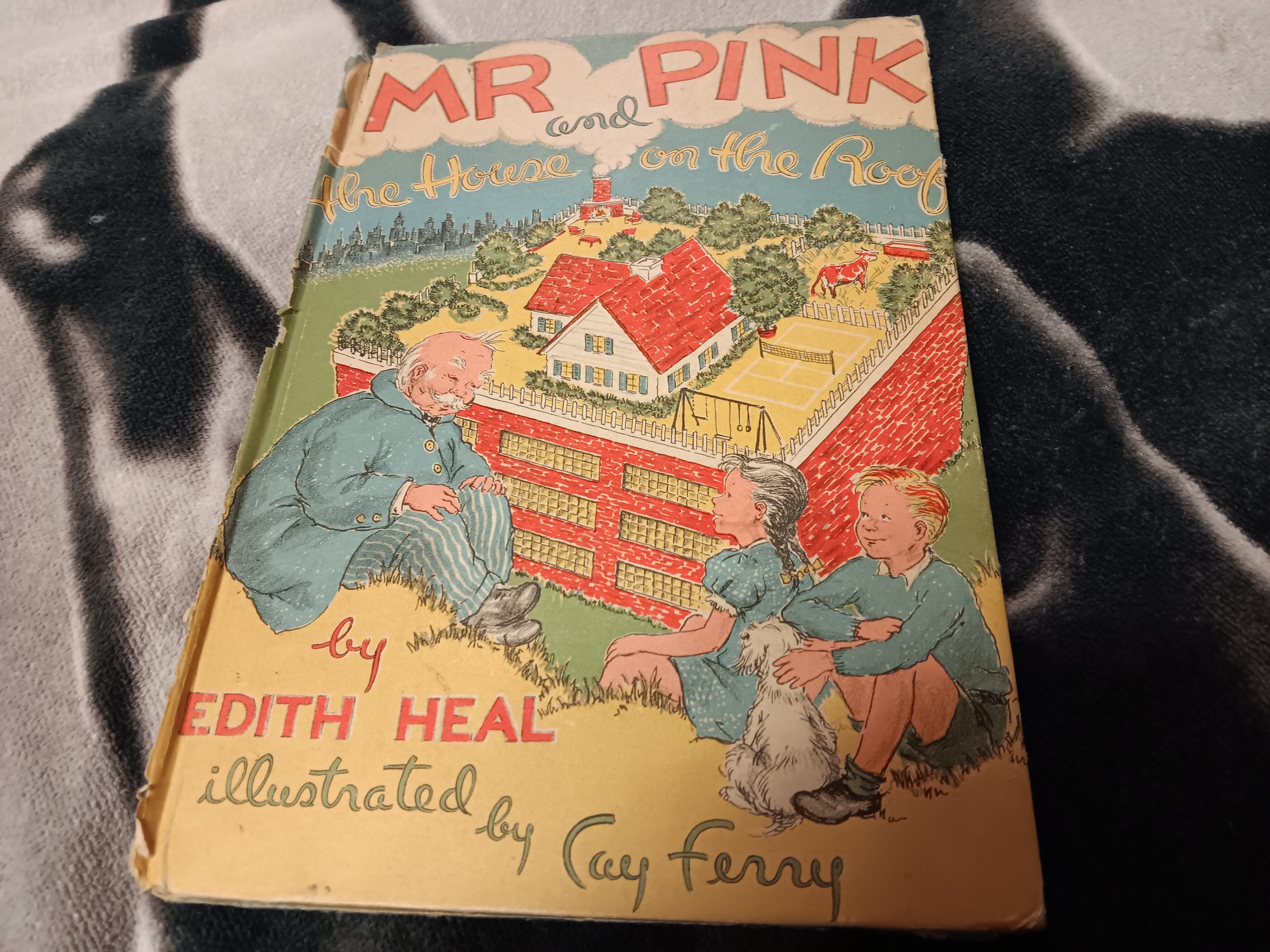 A 1941 FIRST EDITION PRINTING OF THE BOOK, TITLED, "MR. PINK AND THE HOUSE ON THE ROOF", AUTHORED BY EDITH HEAL.