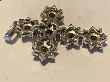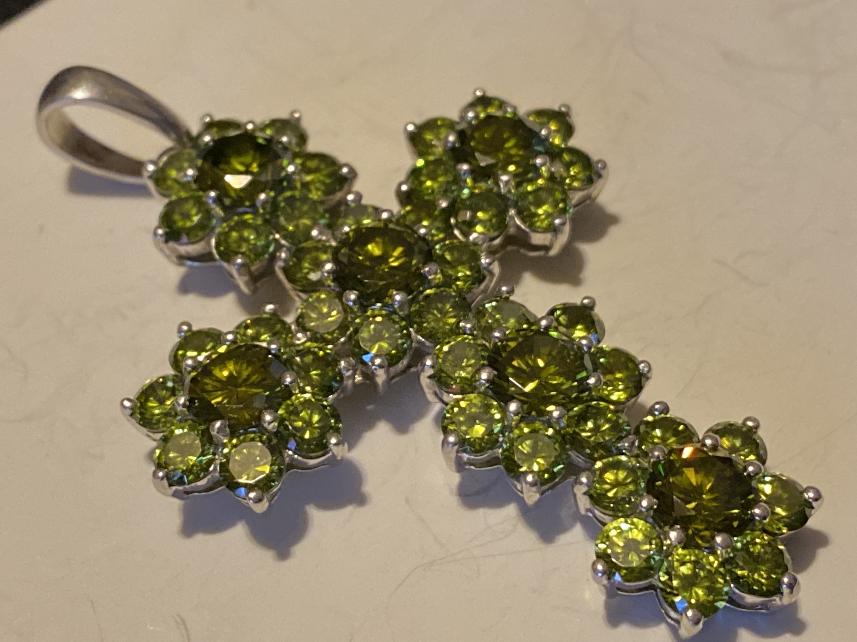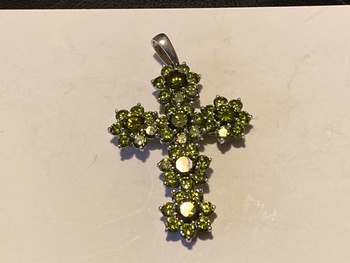 Beautiful cross, could the green rhinestones be peridot, they're lovely