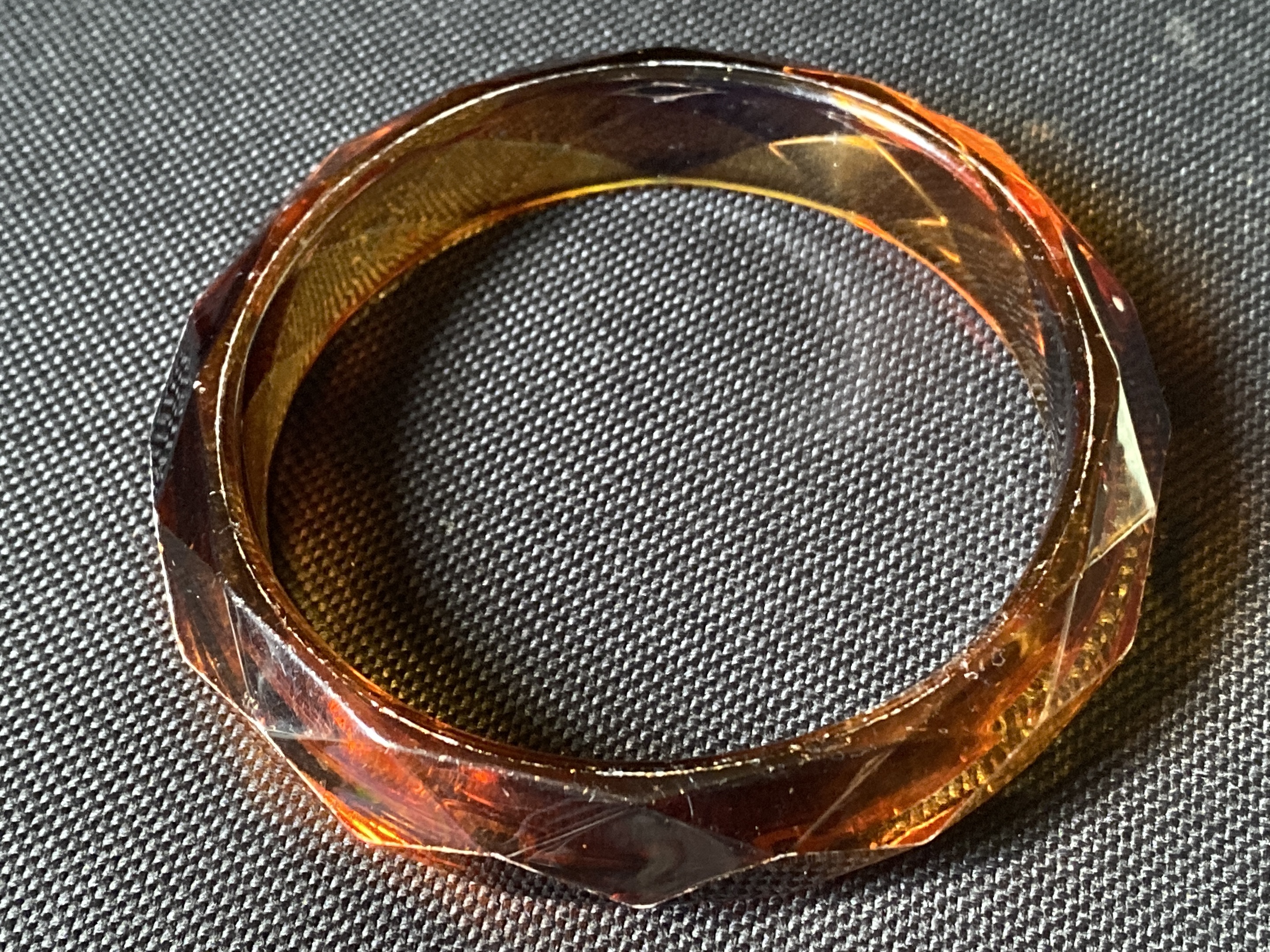Hello I’ve just rediscovered this lovely Bangle,no idea how old it is or where it’s from. But I think it’s celluloid, if I remember right I think this is Art Deco