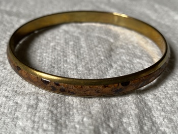 Hello I’ve just rediscovered this lovely Bangle,no idea how old it is or where it’s from. Seems to be some kind of skin, maybe it’s from the 60s. Never seen another like it