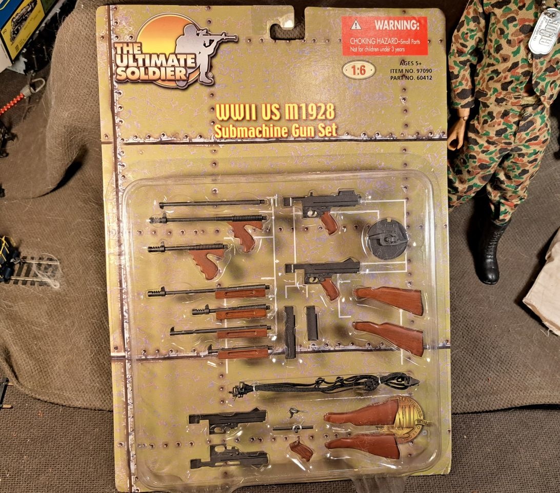 My favorite is the classic drum magazine. I think the one here has the front and rear handgrips. Note the stocks are all removable.
