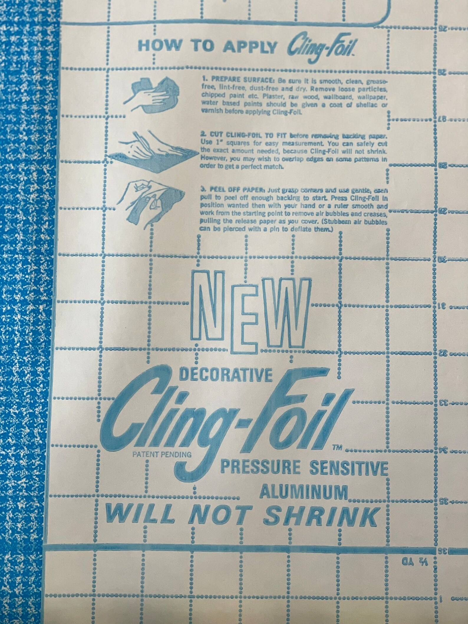 I’m searching for original Cling Foil contact paper that was produced by Borden Inc. in Columbus, Ohio, likely during the 1960s or 1970s. This was a decorative foil used for lining, wrapping, or craft applications.
