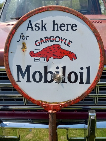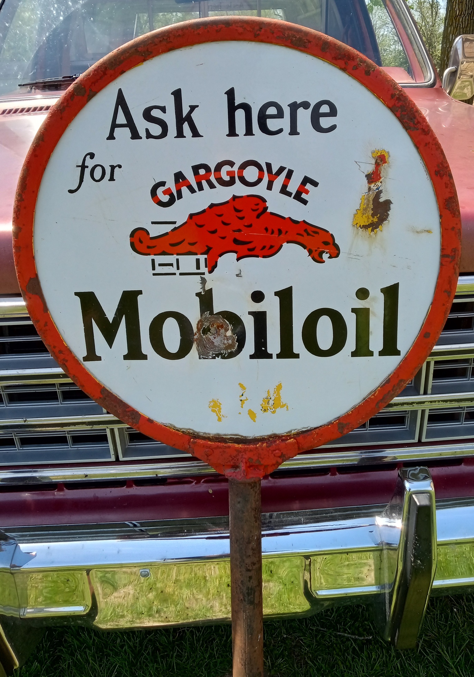 bought this painted over Gargoyle lolliepop porcelain sign out of a back yard just a town over while out getting lunch!
